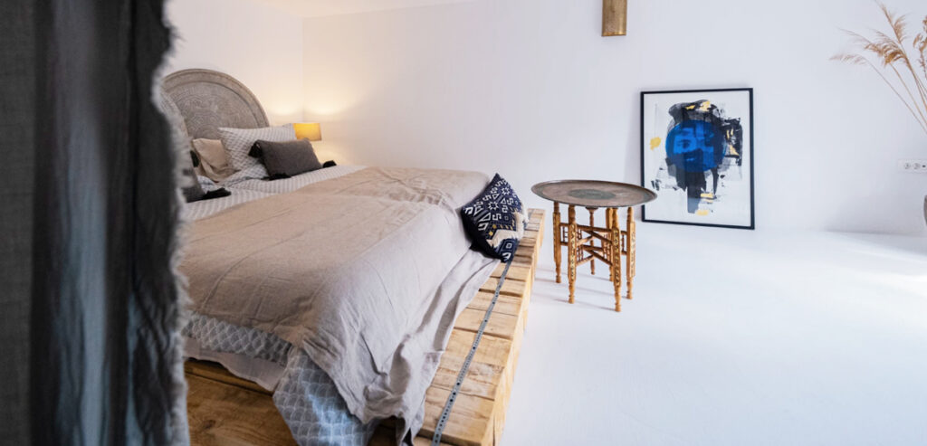 Boho bedroom is a cohesive combination of nature, softness, comfort and colors inspired by earth tones and plants. Microcement blends perfectly with natural materials such as wood, stone or linen, and the rich color palette allows microcement to match boho style.